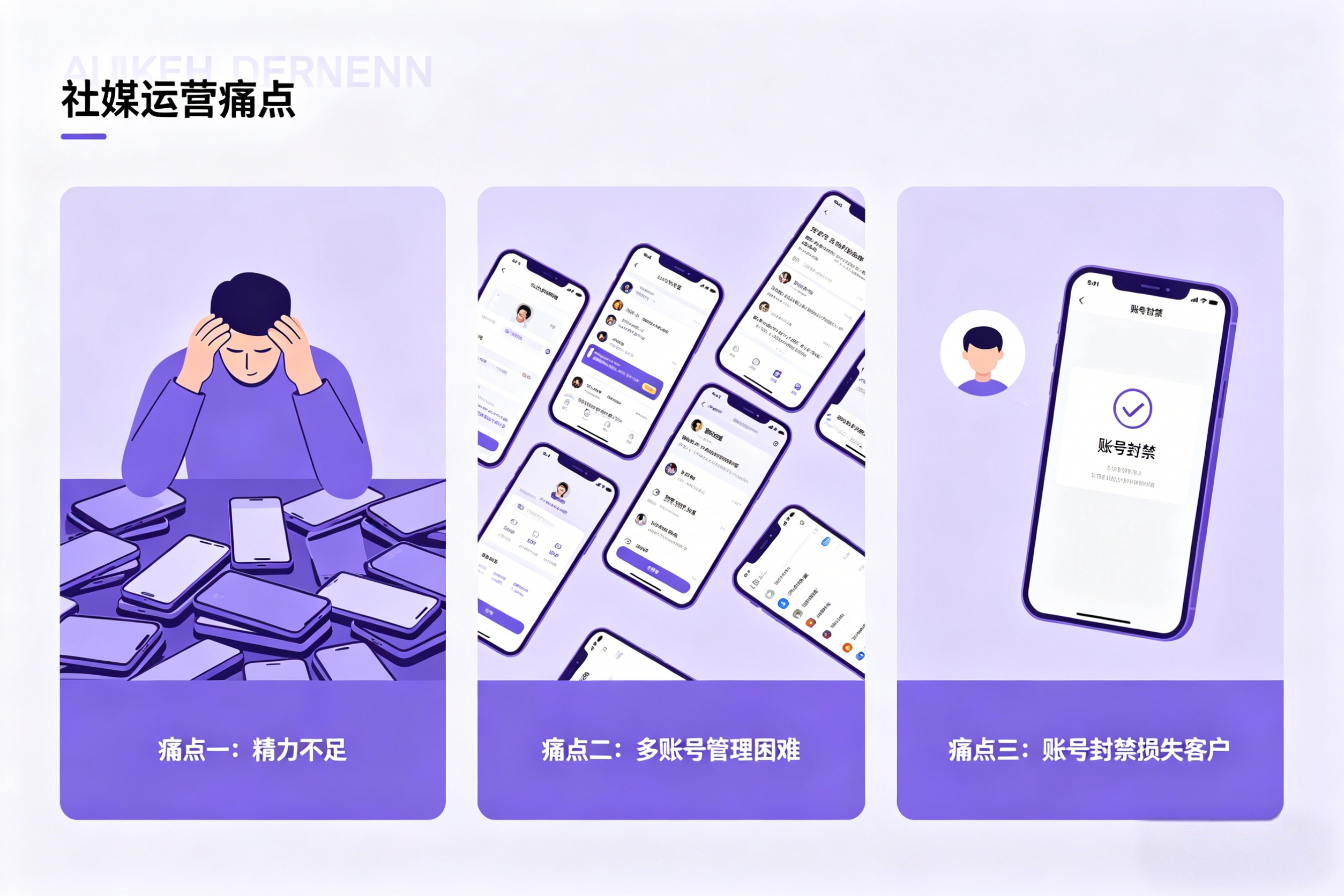 知道目标客户在Facebook、Instagram、TikTok上活跃,但没有时间一个个去加好友、发消息;想同时运营多个账号扩大覆盖面,但管理不过来;好不容易积累了一些客户,账号突然被封,一切归零。